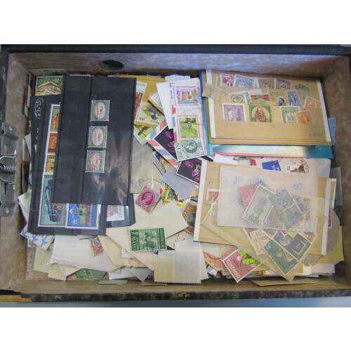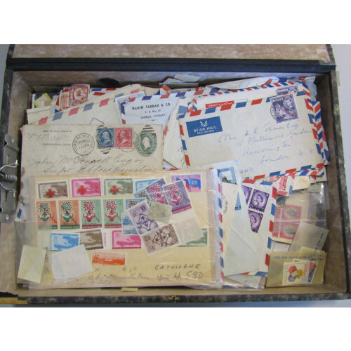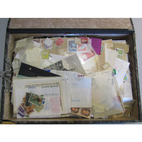 Boxfile of world in packets, covers and loose off paper from early to modern. Includes India, Egypt, Romania, Rhodesia, Switzerland and others. Many to have a sort through 1000's.