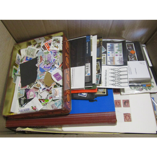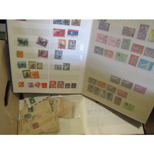 Heavy carton of all world in stockbooks, leaves. Includes Diana Princess of Wales binder (incomplete), Guernsey in SG binder, Sparse New Ideal Album. Other Countries present include Australia, Rhodesia, Italy, GB GV and QEII pre decimal pres packs. Also some covers and fdc's present. Nice sorter.