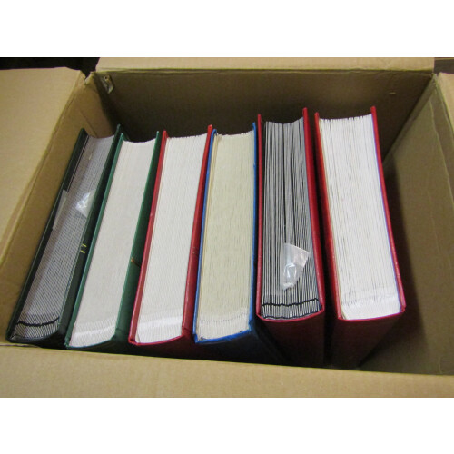 SIX LARGE 64 sided stockbooks well filled with mainstream country sections including amongst others India, Philippines, Luxembourg, Portugal, Syria, Sierra Leone, Peru, Nigeria, West Germany, Pakistan, Hungary, El Salvador, Rhodesia N, Nyassa, Austria, Turkey, Mongolia, Mexico, Russia (3000+), runs from early to modern, strength in modern used, in excess of 18,000 different. Stockbooks alone high original cost.