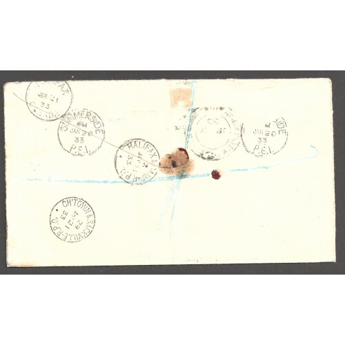 Prince Edward Island: 1933 Printed commercial cover Summerside to London bearing five GV defins tied with SUMMERSIDE PEI Registered box cancels. Opened up for display and toning in places but still an impressive cover