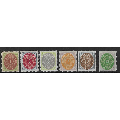 1873-1902 Bi-coloured defins mounted mint six different values 1c to 12c, all fine appearance. Facit 5/6, 8/11 Cat Skr 2,000.