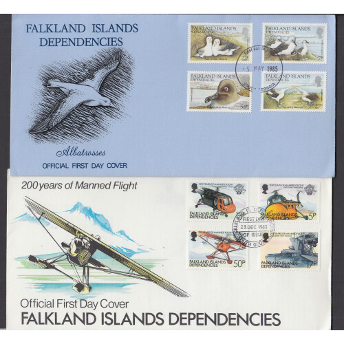 1980's Five first day covers includes 1983 200 years of Manned flight, 1985 Albatrosses, 1984 Volcanoes of South Sandwich. Plus British Antarctic 1985 Graham Land and 1983 Manned Flight.