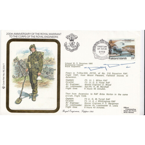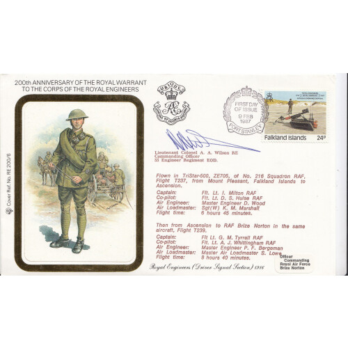 1987 200th Anniversary of the Royal Warrant to the Royal Engineers three typed illustrated covers with autographs of commanding officers.