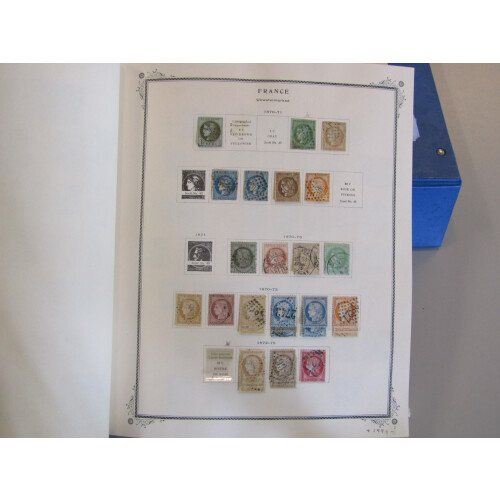 1849-1984 An extensive mint and used collection in a well filled Scott printed album with better content throughout includes imperf Napoleon to 1fr and perforated issues to 80c, 1869 5fr grey (small faults, nice looker, cat £1100), 1870-73 to 80c used, 1876 to 2f, 1900 to 20f, 1924 Expo. set mint, 1925 5f red mint (Cat £180), 1930-31 5f brown both types mint, 20f brown used (3 types), 1938 50f Ader mint, defin long sets to 20f, 1945 Ceres to 100f, 1949 10f vermilion single, 1953 Sports set m, 1950s Fund sets, 1960s Art stamps, much complete to 1984, then 1918 Red X m, 1922 War Orphans set mint (toned gum), 1927 Sinking Fund set m, 1928 set m, 1930 1f50+3f50, 1937 Museum set 2 m, 1936 100th Flight 10f CDS used, 1947 Air to 500f, 1949 to 100f, 1950 to 1000f used, 1957 to 1000f mint, plus many more, enormous catalogue value and over. 100s.