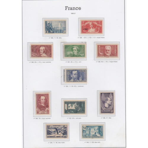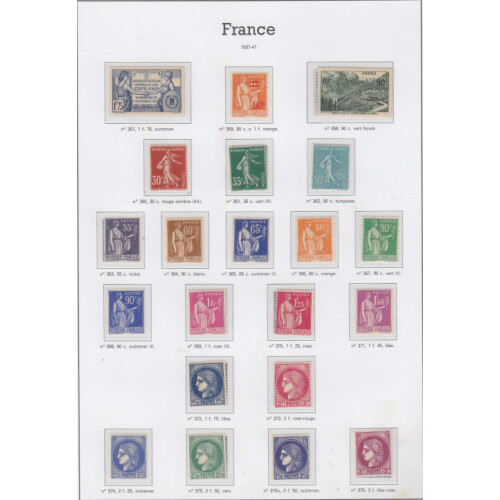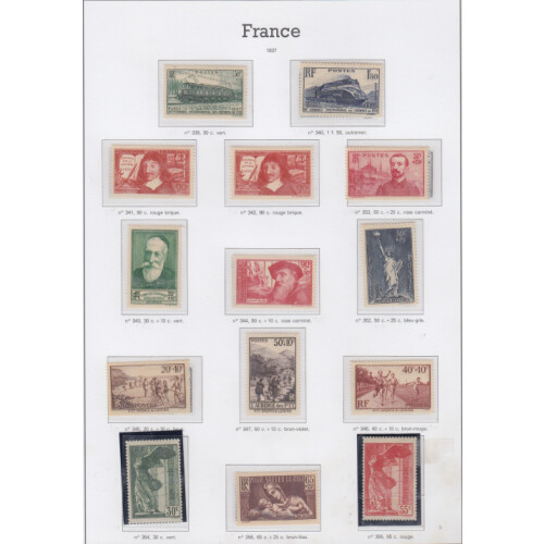 1936-44 Mainly unmounted mint year collection mostly complete for postage issues on Yvert printed hingeless album pages including 1936 Complete except for 100th Flight 10f top value, 1937 National Museums set hinged mint, 1938 Ader (toned gum U/M cat £130), 1940 surcharge set, Fund sets etc, High cat value. Retail €763.