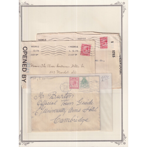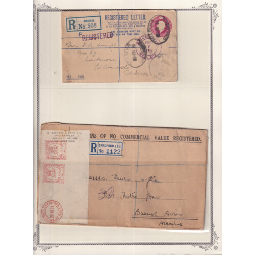 Postal History ranges incl 1931 illus 1st flight to Kenya, 1d postcard to USA with US precancel postage due, 1929 Paquebot with HK cancel to Canada, 1916 censors (2), few P/S envs, regd etc. (12).
