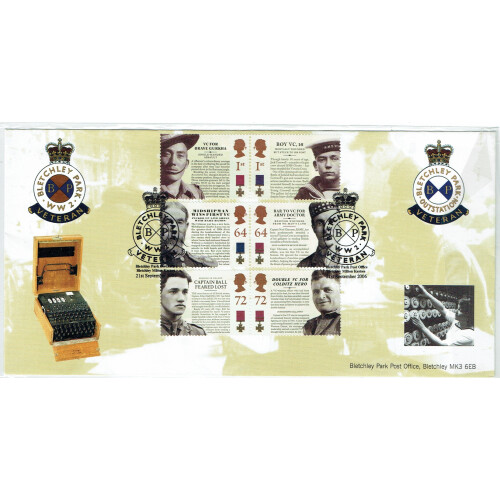 2006 Bletchley Park - Multi signed limited edition cover of 1000 for Bletchley Park WW2 Veteran cover bearing six stamps cancelled special Bletchley Park Post Office cancel, signed on reverse by four different service women who served there as WRNS in the war. Published by Chapman and Mitchell Covers.