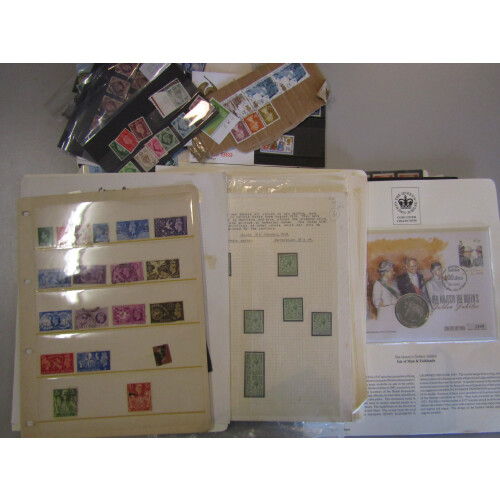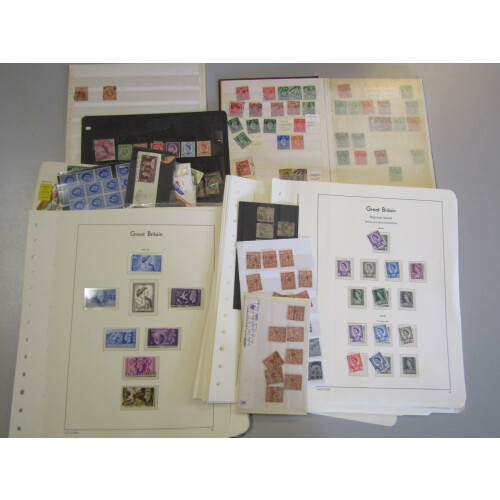 Accumulation in smaller box with 100s on stockcards, stock pages, leaves, loose in packets, covers and few FDCs better noted incl Bank of England test banknote, 1960s Castles duplicated on cards, GVI mint, couple coin covers, GV shades used, 1960s commems in mint blocks, EDVII duplicated, 1935 Silver Jubilee 2½d blue W35 control 34. cyl strip 3, plus low values booklet pane, wmk varieties, 1966 World Cup Willie postcard used, mint regionals in blocks, 1957 Jamboree illus. FDC, 1934 Photo. set mint, 1937 set mint, 1883 5s rose used, 1980 Authoresses 12p mint block of 25 one showing missing P variety, 1971 Wedgwood booklet (straight perfs) 1934 Re-engraved set 3 used, etc, 100s, good sorter.