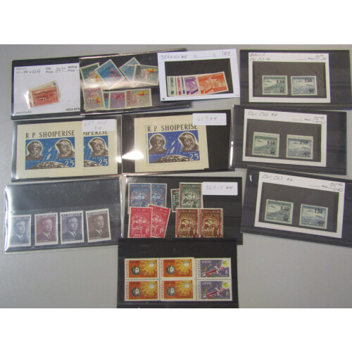 EAST EUROPEAN - Ex Dealer's stock of mainly mint / unmounted mint sets and singles in shoebox with better throughout including Albania 1925 Return of Govt, 1945 Red X set (2, cat £87 each), 1946 Balkan Games set of 7 U/M (Cat £134), 1962 Tourist set both perf & imperf U/M (Cat £50), 1965 Space Flight M/S both perf & imperf U/M (2 of each, Cat £40 a pair), 1952 Air surcharges 0.50l on 5l green (3, cat £49 each), 2.50l on 10l blue (3, cat £60 each), Bulgaria 1884 3 on 10s red used (Cat £100), 1927 air set m (Cat £85, 2 sets), 1931 Games both 12l mint (Cat £380), 10l brown mint (Cat £160), 1932 Air set m (Cat £285), 1958 Brussels Ex 1l imperf mint (3), Croatia 1941 shield ovpt set of 15 in mint blks of 9 (Cat £400), 1941 long issue run of 15 values in tete-beche mint blocks of 4, 1943 Youth Fund M/S imperf & perf (Cat £35 each), E. Silesia incl inv ovpt, Estonia German Occup set 3 mint, 1923 Air forgeries, Latvia 1921 airs imperf, 1930 Rainis Fund set m (2 sets, Cat £110 each), 1932 air set 2 m (2 Cat £34 each), Lithuania 1932 15th Anniv. ranges of vals in blks, 1933 Ausra set mint both perf and imperf (Cat £50 each), plus set in imperf PAIRS (Cat £100+), 1933 Welfare set mint (5, cat £32 each), 1938 Olympiad Fund set cto used (6 plus set in pairs, cat £75 each used), 1938 Scouts ovpt set mint (10 sets, cat £52 each), Montenegro Italian Occup. 1943 set 6 airs plus also in blocks of 4 (Cat £200), 1943 set 10 Nat. Poem Commems in blocks of 4 u/m (Cat £220), Romania 1906 Jubilee set of 11 mint (Cat £260), range of 1850s-70s earlies, 1905 1l black and green mint (4 cat £42 each), 1903 Opening of P.O 5l lilac mint (Cat £190, taken as is), 1931 Navy set m (Cat £70), Scouts set m (Cat £48 each, 6 sets), Air set 5 (Cat £39), 1956 Wildlife set mint imperf (Cat £123), 1958 Brussels Ex. strips (Cat £57, 2 sets), 1960 Olympics M/S (both mint Cat £53), etc, 100s. STC £6000+.