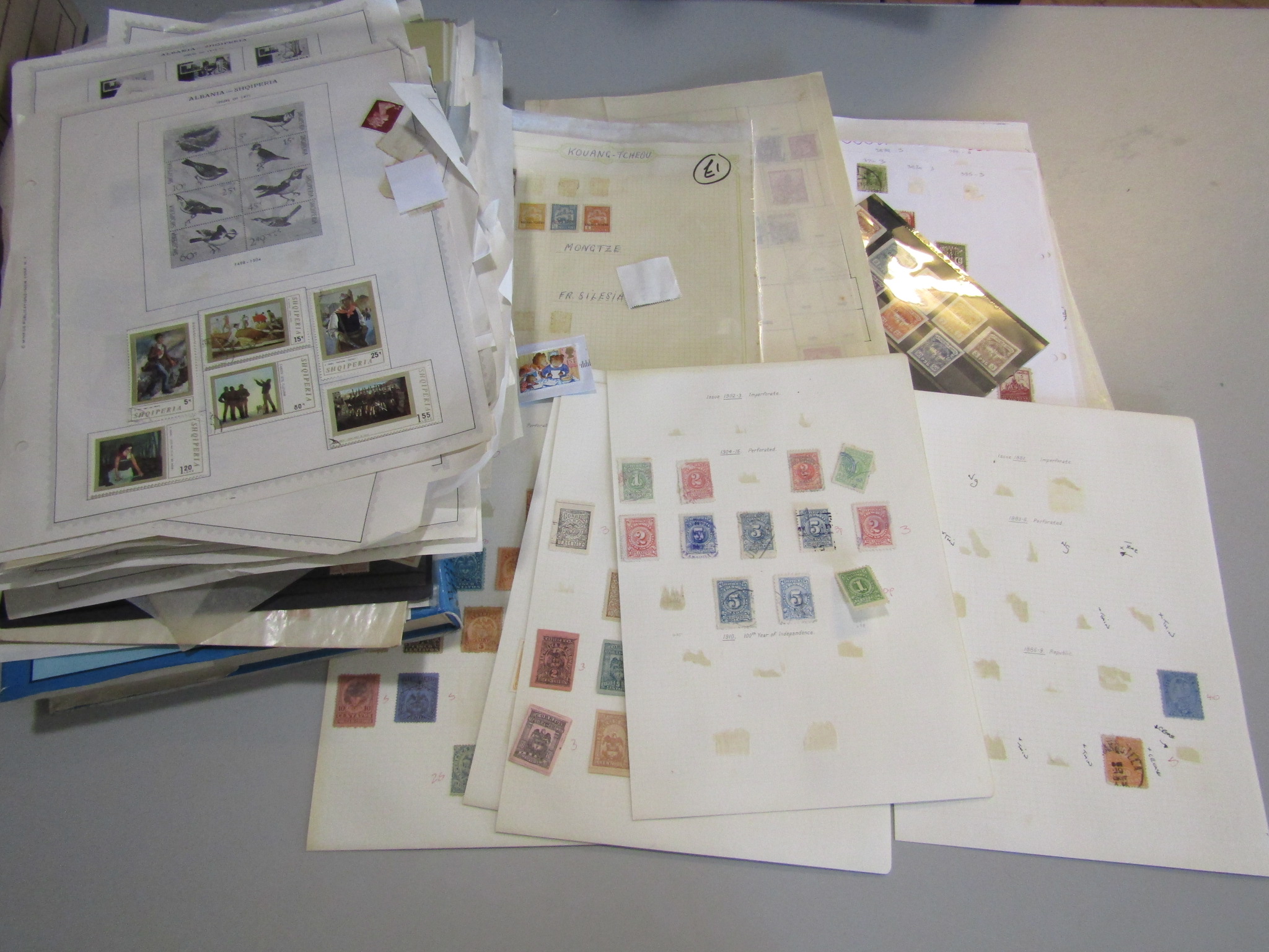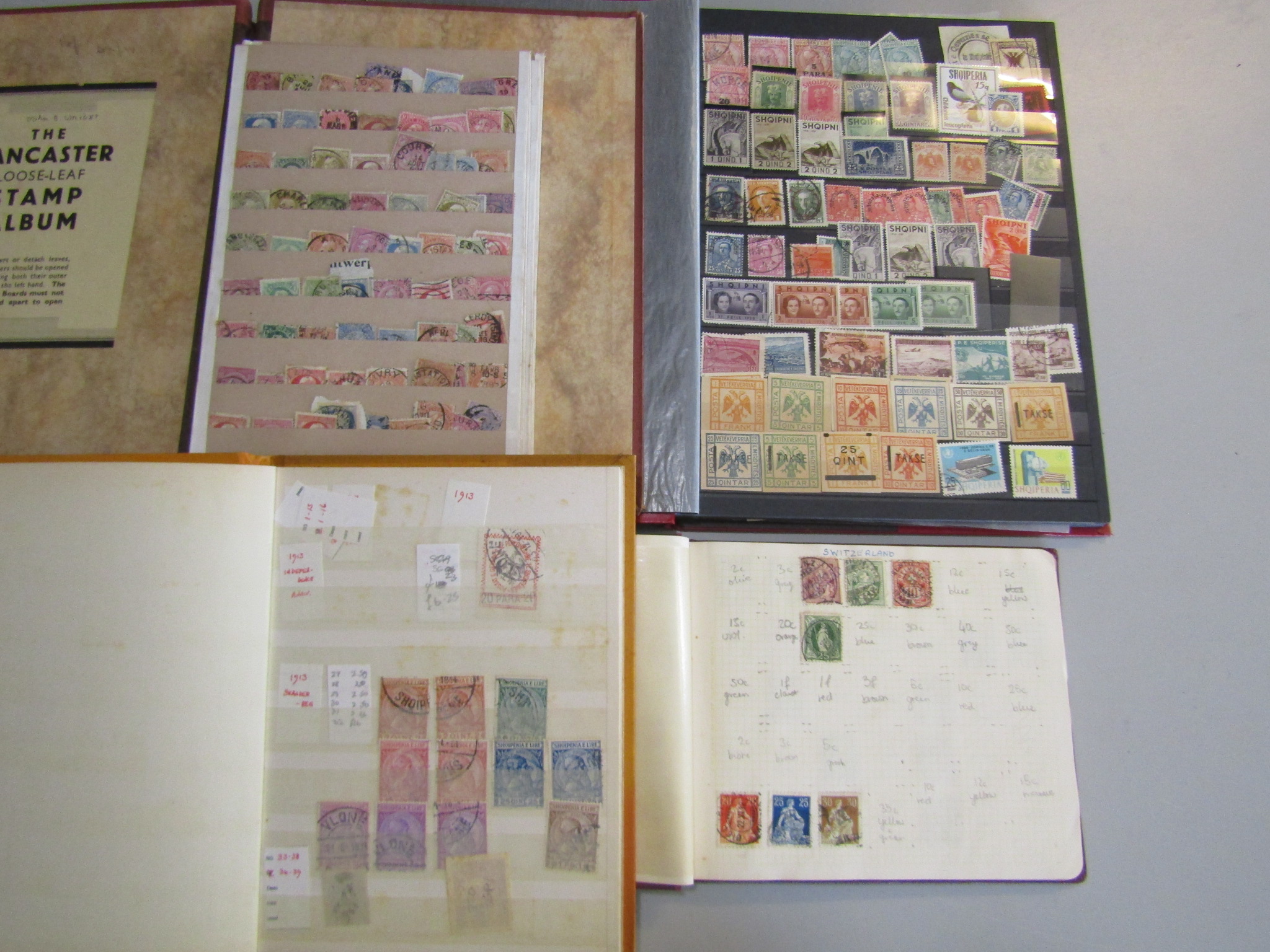 General mixed box with a few smaller albums/stockbooks including a useful collection of Albania and Belgium early to mid period plus a wealth of material on album leaves. Well worth a look.