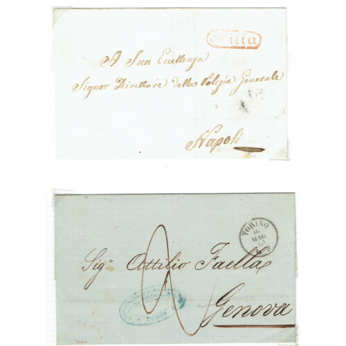 Pre-stamp Mail small collection of useful entire letters from early 1819-64 many with single line place names, or fancy cancels includes 1819 Vigavano, Scilla, Torino, NIZZA, Tropea, Tricarico, Bologna CDS cancels, Modena fancy CASA DI DIO in blue, POLIZZI plus fancy framed h/s in red, Mazzara, Cetaluvo. Intr group, (21).