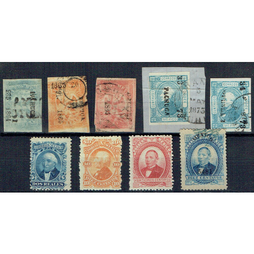 1856-1861 Hidalgo Imperfs assembly of 14 values some with good margins, noted ½r blue (3), 1r yellow, 2r green (6, shades), 1861 1r black on green, 4r black on yellow, 8r black on red, various cancels, taken 'as is, plus small range of 9 others. Attractive group taken 'as is'. (23).