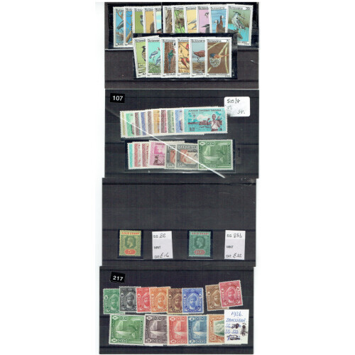 British Commonwealth African countries QV onwards on a small group of stockcards as purchased from different auctions better throughout including Lagos QV 2½d ultr mint strip of 3 ovptd Specimen, Nyasaland 1935 SJ set m, Swaziland 1933 to 5s mint, 1956 set 12 used (Cat £80), Nyasaland 1893 BCA 4s mint (Cat £110),1950 P.Due set mint (Cat £100), Zanzibar 1936 to 10s mint set (Cat £140), KUT East Africa 1903 to 8a mint (Cat £120), 1938 £1 (SG 150 lightly used Cat £180), 1948 RSW set U/M (Cat £50) set used (Cat £70), East Africa EDVII ½a to 8a mint, Somaliland, Gold Coast GV 5s & 10s mint (Cat £48), etc. High cat value.