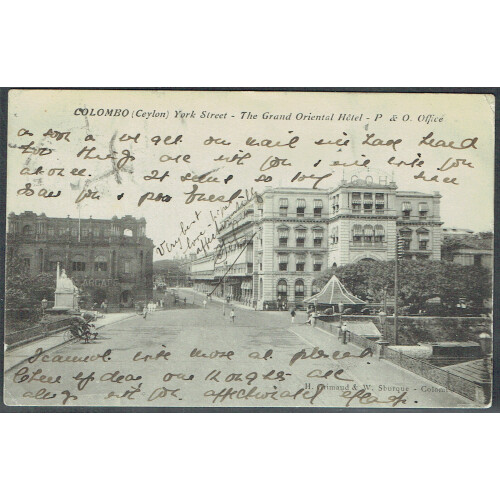 1913 (22 Dec) French Seaposts: PPC of Colombo addr to France bearing France 20c Sower tied MARSEILLE A YOKOHAMA No.7 octagonal cancels. Fine.