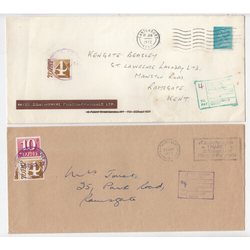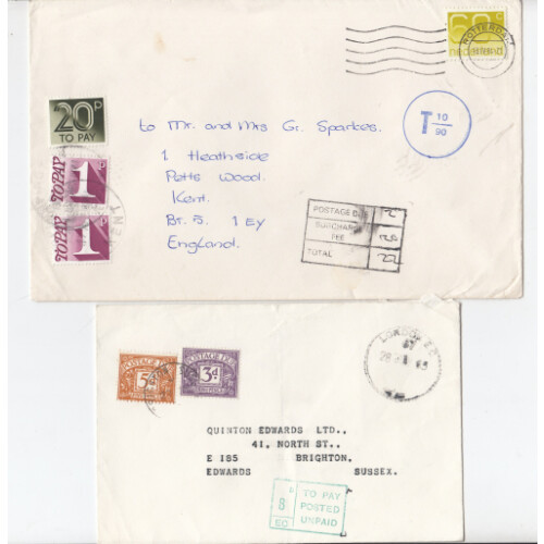 Selection of three QEII covers with 1960's postage due includes pair 6d and 8d. Plus cover with insufficient address cachet and two with posted in wrong post-box. Plus 1880's 22p to pay. Five covers with 1970's postage due and two not known 1990 covers/