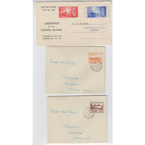 1943-48 Plain First Day Covers for Views set on 5 covers and 1948 Liberation set on printed FDC, mainly fine, Rated £110.