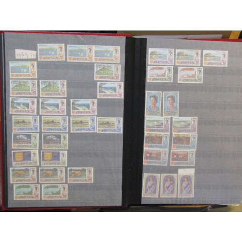 Accumulation in various large stockbooks and binders, includes much face material incl presentation packs, Jersey stamp collection in two stockbooks 1958-1994 includes many unmounted mint sets and miniature sheets, FDCs incl Guernsey 2003 £5 (2), plus much more, heavy lot.