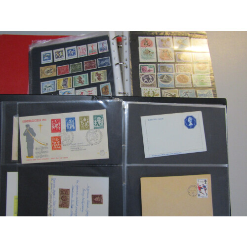 Accumulation in a BOX with varied ranges, loose on and off paper, world in several binders, Br. C/W & Foreign, Newfoundland 1937 Coronation long set mint, Queen Mother Westminster covers collection, large binder with Olympics thematic colln, etc, 100s.