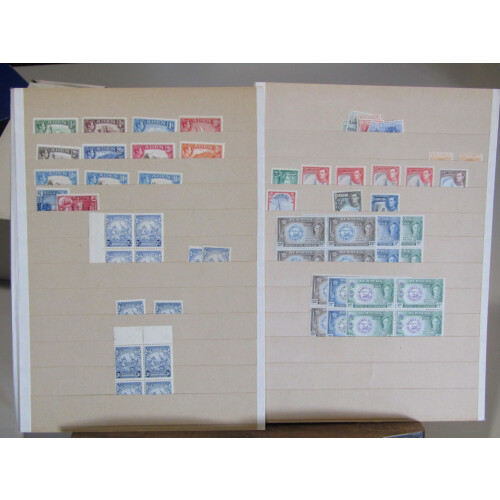 British Commonwealth mainly mint on manilla stockpages with strength in George Sixth to QEII from many different countries noted Ascension GVI in mint blks of 4, Falkland Is. 1938 to 6d, 2½d in Bradbury imprint block of 6 (SG 152), Hong Kong 1941 Centenary set used, Newfoundland, etc, 100s.