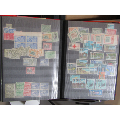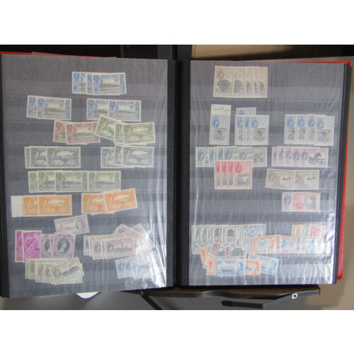 British Commonwealth mainly mint stock in a large well filled stockbook with strength in QEII from countries P to V, noted Papua New Guinea, Rhodesia & Nyasaland to 10s, St Helena, St Vincent, Samoa, Seychelles, Sierra Leone, Singapore, S. Africa, SWA, Swaziland, Zanzibar, Tonga, Transjordan, etc, large quantity, useful lot.