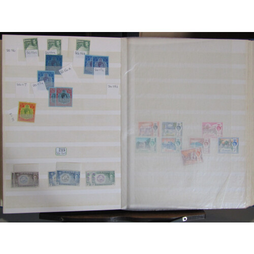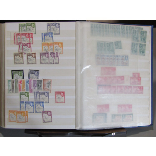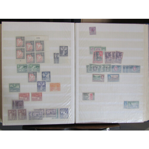 British Commonwealth mainly mint stock in a well filled stockbook with strength in GVI from Aden to Fiji, noted Ascension 1938 to 5s mint (2), Bahamas GVI to £1 (gum tones), Barbados, Basutoland to 1s, Bechuanaland 1938 to 2/6, Bermuda GVI keyplates 2s (4), 2/6 (2), 5s, Br. Guiana, Br. Honduras, Burma incl Mly Admin ovpts to 10r in mint blocks of 4, Cayman Is. GVI to 10s mint, Cyprus GVI to 18pi mint, Dominica GVI to 5s mint, Falkland Is GVI to 2/6, large range of Falkland Is. 1945 Dependencies overprints, 1948 Thin & Thick Map mint, 1954 Ships to 1s mint, Fiji 1938 to 2/6 mint etc, huge qty.