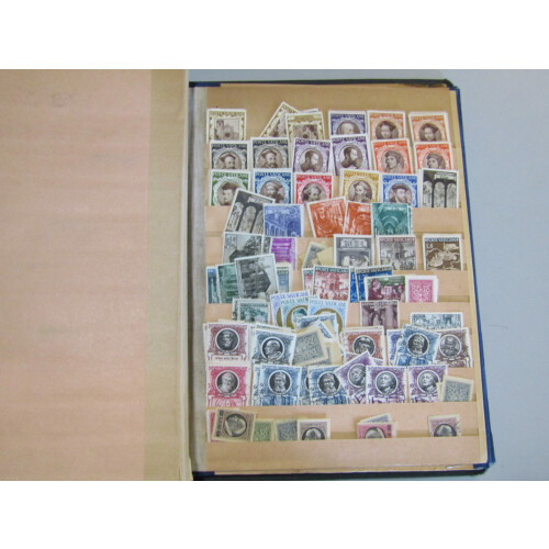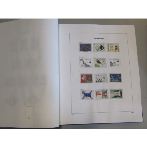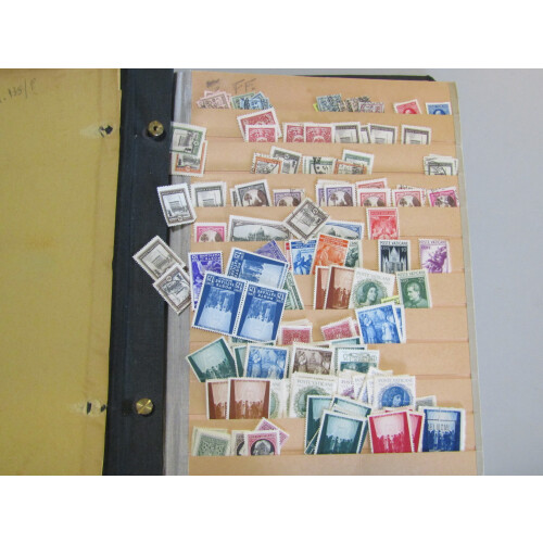 Carton containing early printed Schaubek album with sparce World collection, Davo hingeless album for 1980's Netherlands, Vatican mint accum in binder, stockbook of mint modern Germany, binders of Jersey & Guernsey, etc,.. Cheap sorter.