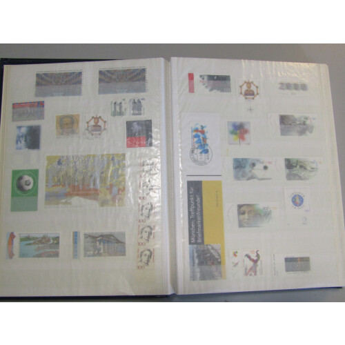 Carton with three stockbooks with u/m collections of modern issues with Germany, USA, Italy and a few other used foreign, cover album of GB mainly FDC's,plus a few accessories with album, Hagner sheets in binder, catalogues, etc,...