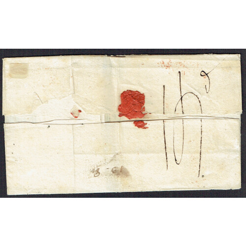 1810 (16 March) Peninsular War: prestamp entire sent from Tamames (just after the Battle of Tamames Oct 1809) by an officer of the French 76th Regiment De Ligne addr to a French Department with the address erased. Fine three line ,"No.6 . P.P. / Bau PRINCIPAL / ARM.D'ESPAGNE in red. Manuscript charge marks on reverse, small enclosure. Fine French army peninsular war item.