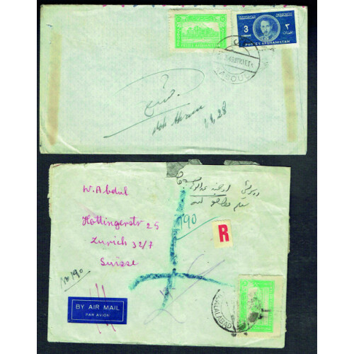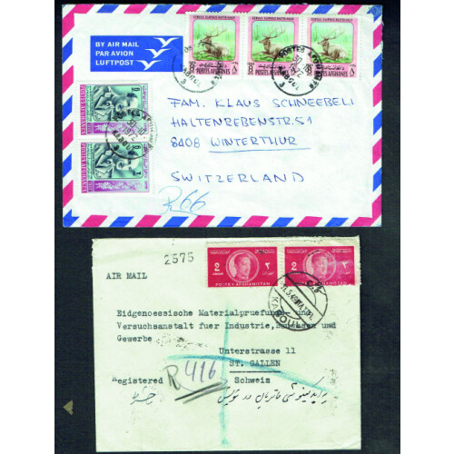ASIA: Small group of commercial covers middle to modern including Afghanistan (5), Tibet early philatelic LHASA (3), Nepal unused aerogramme, 1958 Human Rights Day FDC, Bhutan incl 3D on 1968 FDC (unusual), plus a few modern FDCs incl imperfs & M/S for 1979 YOC, etc, intr little group. (29).