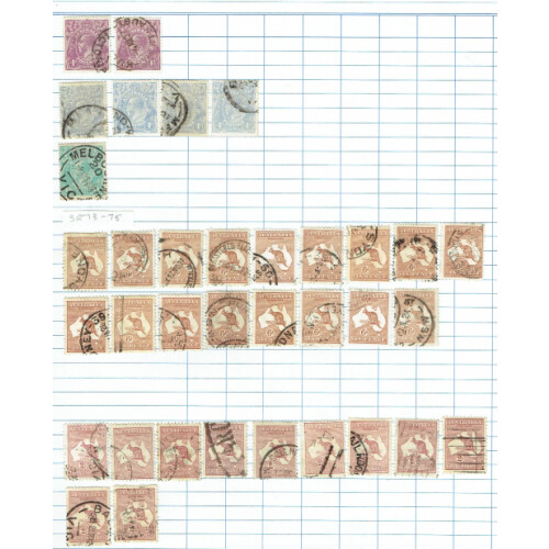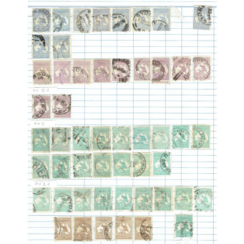 Collection of many 100s early to modern mint & used stamps on large old time ledger pages unpicked with good range of different issues including GV Roos duplicated values ½d to 1s (10), GV Heads low values heavily duplicated incl many shades noted 4d lemon-yellow (2), 1915 Roos Die II 3d yellow-olive used (8), 1s blue-green Die II & IIb (26), 2s brown (5), 1918 to 1/4d, 1926 to 1/4d, 1929 9d (3), 1931 vals to 1/4d, 1931-36 to 5s (3 one on piece), 1948 to £2 green (5), 1963 to £1, then postage dues from different printings, etc. Ideal to fill those gaps. Many, many 100s.