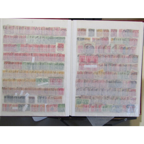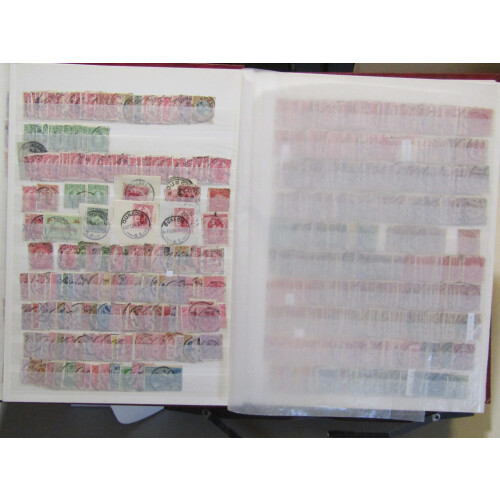 POSTMARKS in a large well filled stockbook from 19th century to modern periods dozens of duplicated singles collected mainly for postmark interest includes two 1d Universal on cover tied Half Moon Bay or Ngatimote cds, arranged A to Z, on and off paper, mostly good cds cancels, large range of QV issues for small defins etc, huge qty.
