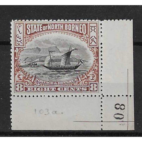 1897 P.15 8c black and brown bottom right corner marginal single appears unmounted mint, sheet No. 80 with guide lines and pencil 103a on obverse, nice example, SG 103a Cat £65 mint.