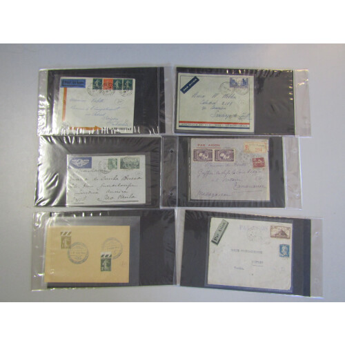 Eclectic group of covers/cards with 1862 Accounts sheet folded to form an entire bearing four margin Napoleon,then 1930's to 1940's with 1936 Philatelic Bourse card with large blue bourse cds, 1938 env to Djibouti with DIRECTION du PERSONNEL MILITAIRE/ 1er BUREAU h/s in violet, 1940 philatelic card bearing 1c & 2c sowers tied with large Czechoslovak Army Post cds' in blue, 1949 CITEX cover with imperf/perf strip of 4 tied with Exhibition cds plus other better stamps of 1930's/40's on flown commercial covers Nice lot with odd fault but many fine and attractive (14).