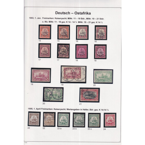 East Africa: Attractive collection neatly laid out on leaves identified in Michel order mint and used with better throughout including 1893-96 set of 5 fine used (Cat €200), 1896 (Apr) set of 5 used (Cat €60) plus 10p on 20pa mint, 1901 Yachts set of 11 to 3r used (Cat €450), to 2r mint, 1905-19 Yacht set of 8 used (Cat €200), set 8 mint (Cat €220), 1905-20 mint set to 1r & 3r (Cat €94), mainly fine (69).