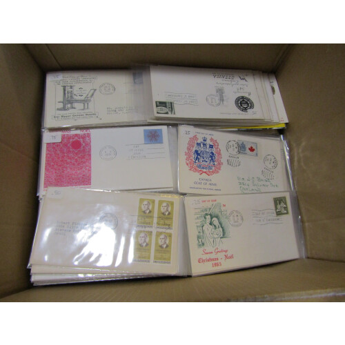 FRANCE AND CANADA FIRST DAY COVERS - An enormous accumulation of loose mainly from 1950s to 1980s with dozens of attractive French FDCs with special cancels or engraved illustrated envelopes FDI, Canada defins and commems for similar periods mainstream but mainly all different, many, many 100s, possible a 1000+, great for resale - cheap at estimate.