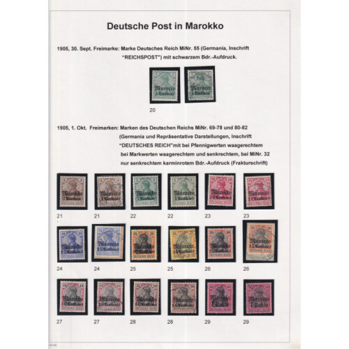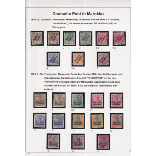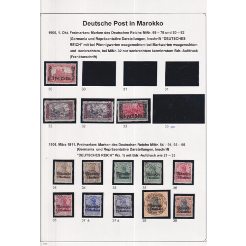 Morocco: Attractive collection neatly laid out on leaves identified in Michel order mint and used with better throughout including 1899 (20 Dec) set of 6 used (Cat €120), 1900 (1 Oct) set of 11 to 2p50 on 2m used (Cat €227), 1905 set of 11 mint to 2p50c on 3m (Cat €327), used 3p75c on 3m used (corner crease cat €220), 6p25c on 5m hinged mint (Cat €200), 1906 set of 12 used (few paper wrinkles, 5 top values are expertised but taken as is, cat €1400), 1911 set mint (Cat €55), used set to 1p25c on 1m, 1904 Tanger PPC, mainly fine (88).