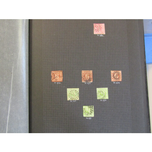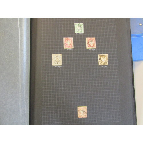 Bavaria: Nice collection mint and used neatly assembly in black springback album on black faced leaves some mixed condition as usual includes Imperfs mainly for shades 1849 imperfs 3k blue (3), 1850-58 1k pink, 6k brown (3 shades), 9k green (3 shades), 1862 1k yellow (2 shades), 3k red (3), 6k blue (2), 9k (2 shades), 18k red (Cat £225), 1867 6k bistre, 6k blue, 18k red (Cat £275), 1911-13 values to 20m chocolate on yellow (Cat £220+), Type II to 2m, 1914-20 King Ludwig sets complete mint, some used, etc, ideal lot for expansion.