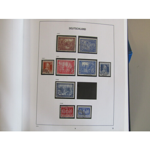 1946-1990 An extensive mainly used collection in a well filled DAVO printed album (for W Berlin) with huge amount of completion neatly mounted in black mounts with very few spaces left, noted 1946-8 Zones, 1949 sets except for 40pf Refugees, 1950 Bach (Cat £145), 1951 Posthorn set used, St Marys Church (Cat £220), Philatelic Ex set (Cat £145), 1952 onwards mainly complete to 1990, miniature sheets, ideal lot for completion. Many 100s.