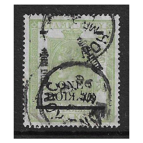 Postal Fiscal: 1897 $1 on $2 bluish-green with both handstamped Chinese Characters fine used incomplete heavy CDS cancels, dramatically centered left otherwise fine, SG F11. Cat £150.