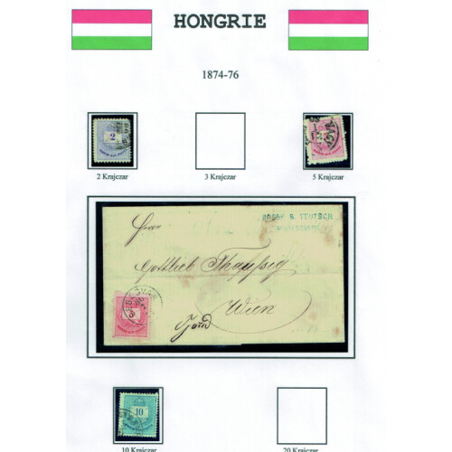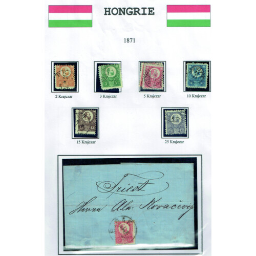 1854-1903 Classics assembly on an album page incl two covers including 1872 E.L from SISSEK to Trieste with arrival b/s bearing 5k red (litho), then singles Litho 1871 set to 25kr used incl 3k green (Scott $600), then engraved 3k green. Useful and attractive assembly.