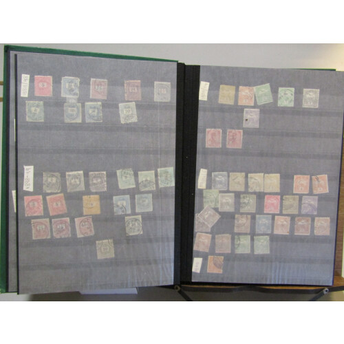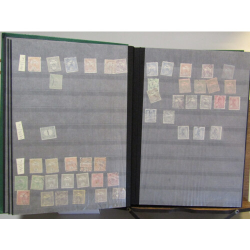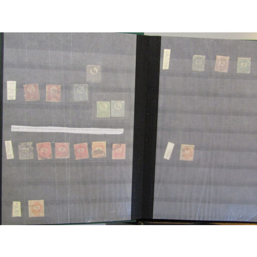Large stockbook with a mainly used duplicated collection from first issues to 1955, dozens of earlier defins from turn of the 20th century, 1871 proofs of 3k & 10k, then through the 1910s-20s-60s, huge amount of commems in sets and part sets, large qty.