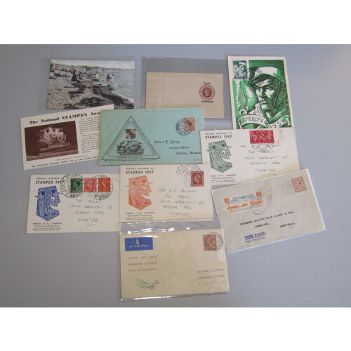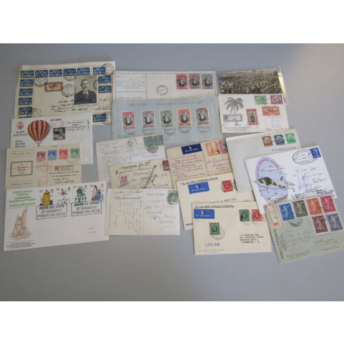 COVERS and cards, a worldwide group with some interesting including Malta 1970 Balloon flight,France two early stamp PPCs, Tonga 1938 & 1944 long covers, GB 1976 Bristol Morrismen h/s onCultural Traditions cvr, 1908 The Dairymaids promotional PPC used, Egypt 1930 airmail front withphoto of aviator? and 27m stamp in a border of airmail labels, France 1937 Wedding Day cover,1906 German SWA PPC unstamped Fieldpostcard soldiers mail, 1933 West Country air service 3dlabel on F/F cvr, Alsace h/s cvr, 1972 Woodford Red Arrows multi signed cover, couple of IOMcards etc, very interesting group (c40).