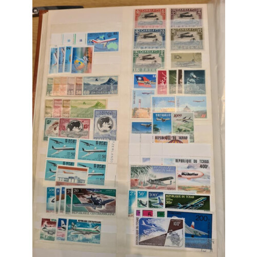 Aviation - A large well filled 64 sided stockbook with dozens of mint and used sets middle period to modern from many different countries incl M/S noted Romania, Belgian Congo, China airs mint, Post independent France colony airs with high face values, Cyrenaica 1934 Colonial Exhib airs mint, Germany 1934 Count Zeppelin 3m m/m, Newfoundland 1931 air to 50c mint, S. America countries, Russia 1944 Liberation M/S imperf mint, Italian Somalia airs m & u, Italian Trust Terr.) 1950 air almost complete incl top 3 key vals mint (SG 252/4 cat £250), Western Airways Canada labels blks of 4 mint, Br. Columbia, Fairfield labels mint, etc, 100s.