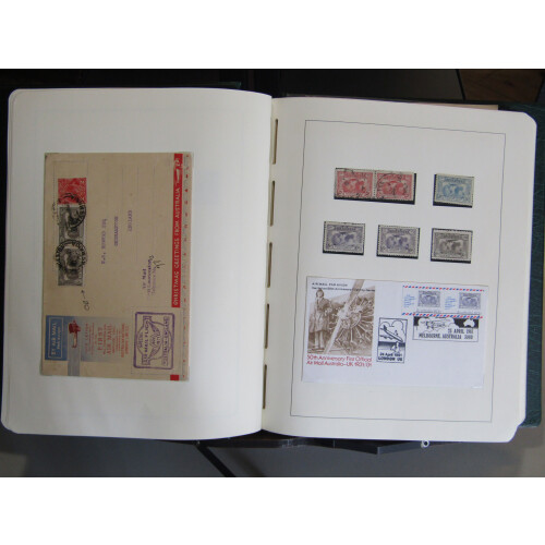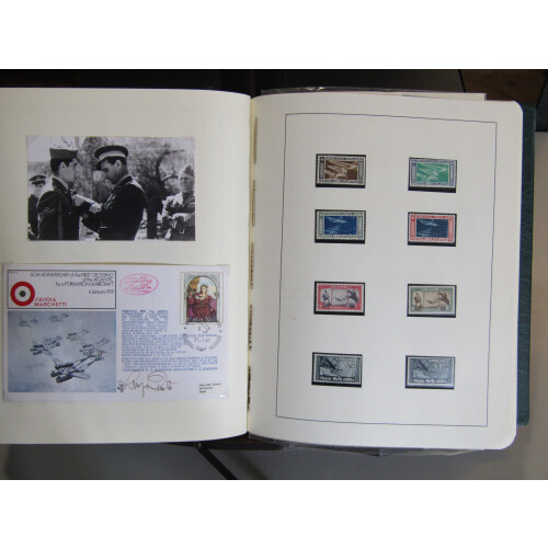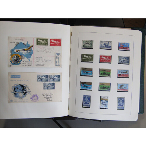 Aviation: Extensive mint & used collection in a well filled Lighthouse album with dozens of sets and ranges for countries from Anguilla to Fiji, covers periods from the 1930s to modern with some better throughout including Australia 1931 1st flight illus cvr to UK, 1934 Trans Tasman cacheted cvr with one stamp missing ptd Per VH-UXX Faith in Australia, 1938 (9 Aug) illus flight cvr to UK, Papua 1934 NG to Australia illus 1st mail cacheted illus cvr, Bahrain 1976 M/S & FDC, Brazil 1981 flight covers, Greece 1926 Air set 4 mint (Cat £90), Tripolitania & Cyrenaica 1933 Balbo sets of 2 mint (Cat £104), Italy 1932 Air Express set 2 mint, 1933 Air set 6 Zeppelin mint (Cat £120), Dodecanese Is. 1933 Air set of 6 mint (SG 116/121 cat £500), 1933 Air set of 2 triptyche mint (Cat £190), 1909 Bleriot photo PPC used in UK, Egypt 1933 set 5 mint (Cat £125), etc, good qty and extensive collection.