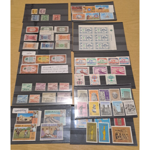 A useful Middle East assembly on 24 stockcards from an ex collector's estate, mint and used early to modern, noted Bahrain, 1976 1d in used blks of 6 (2 cat £120), Saudi Arabia 1960s sets mint, Oman, Syria, Iraq airs mint, Jordan 1954 set 6 mint, poor to fine. Useful lot.