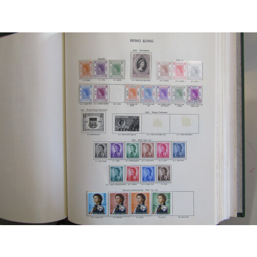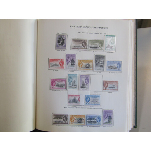 British Commonwealth: A superb mint collection for early QEII periods in a well filled New Age printed album including Dominica 1954 set, Fiji 1954-62 set, Gambia 1953 set, 1963 set, 1966 set, GB 1958 DLR Castles, KUT 1960s-2 set, Leeward Is. 1954 set plus many more etc, lovely clean lot with high cat value.