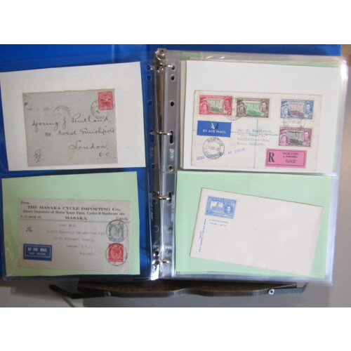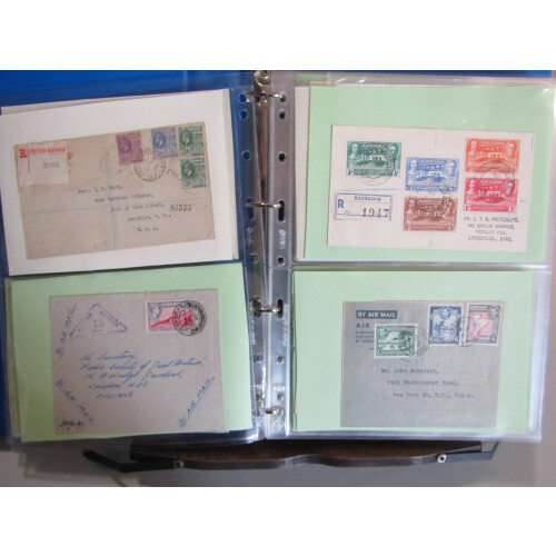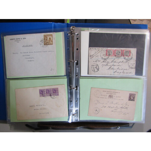 British Commonwealth covers collection of 100+ items in binder 1895-1979 with an interesting selection of good to fine covers noted Malta P/S regd env uprated, 1938 Pitcairn Radio cover, 1902 Cape of Good Hope P/S card with BRITISH BECHUANALAND to London, airmail. rates, BWI, regd and odd censor incl 1963 incoming to Hungary from Malta, multi franked covers incl Sierra Leone, Bahamas, Jamaica, Montserrat GV 4d blk of 4, Br. Guiana etc, interesting lot. 100+.
