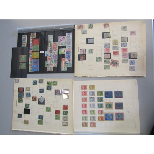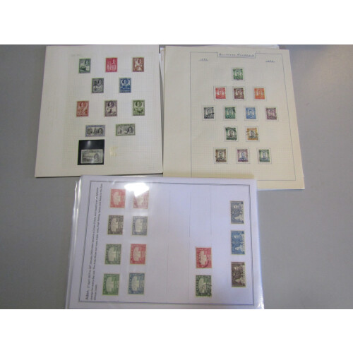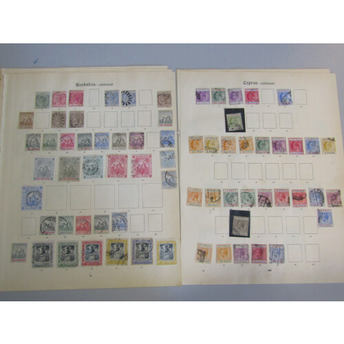 British Commonwealth: Useful range of country collections on pages or old time leaves noted Aden incl squared circles on India, Barbados QV-GV on old leaves with valuable assembly, Bermuda GV keyplates 2s, 2/6, 10s fine used (high cat), Cyprus QV-GV on old leaves, Grenada collection, Hong Kong, India, Gwalior officials, K.U.T. GVI 5s (3) mint, Nigeria colln, N. Rhodesia GVI sets mint (appears complete for the period), Nyasaland GVI mint incl 1938 set (Cat £225), PNG, S. Rhodesia GV/GVI mint & used colln, enormous cat value.