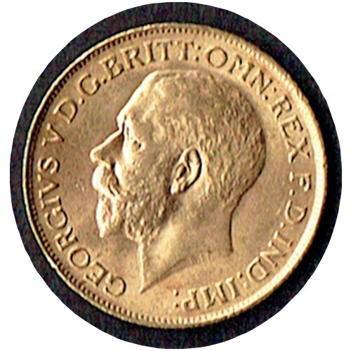 1912 Full gold Sovereign: Minted George V and George & Dragon on reverse. Some marks, average condition. This issue has approx 7.93 grams of 22 carat gold.