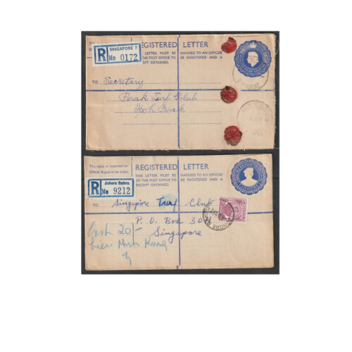 1957-1961 Registered mail mainly all different including postal stationery envs from Malaya Federation IPOH, ALO STAR, 10c brown MENTAKAB (faults), Johore 20c dark blue from JOHORE BAHRU, KUKUP, STATION STREET Kuala Lumpur, 1961 20c used from KANDANG KERBAU. Very mixed (8).